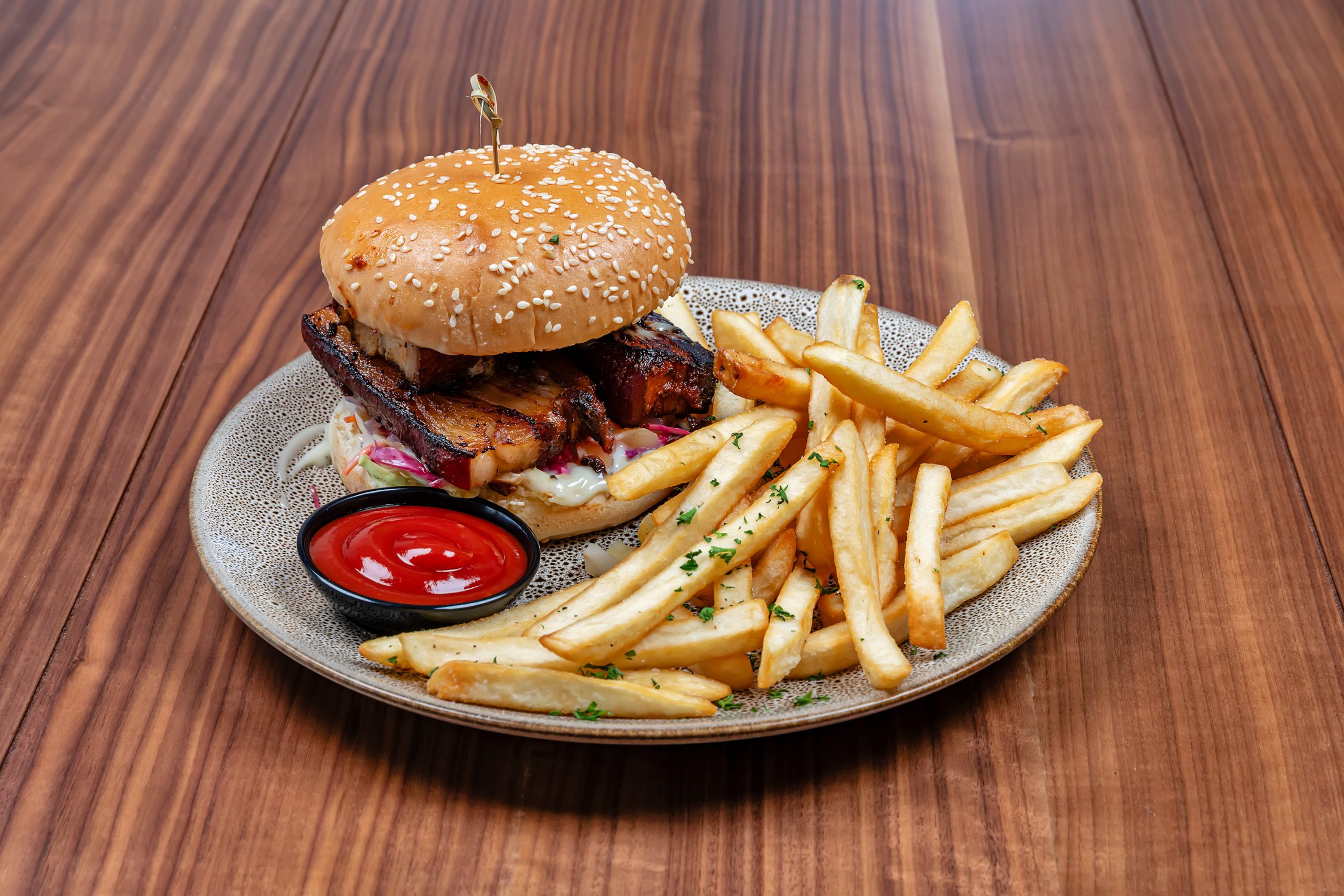 Fantastic service, we had a beef & cheese burger with chips & the gluten free pork belly burger with chips plus drinks. Portions were large & food was delicious. There is a good selection of gluten free options on the menu.